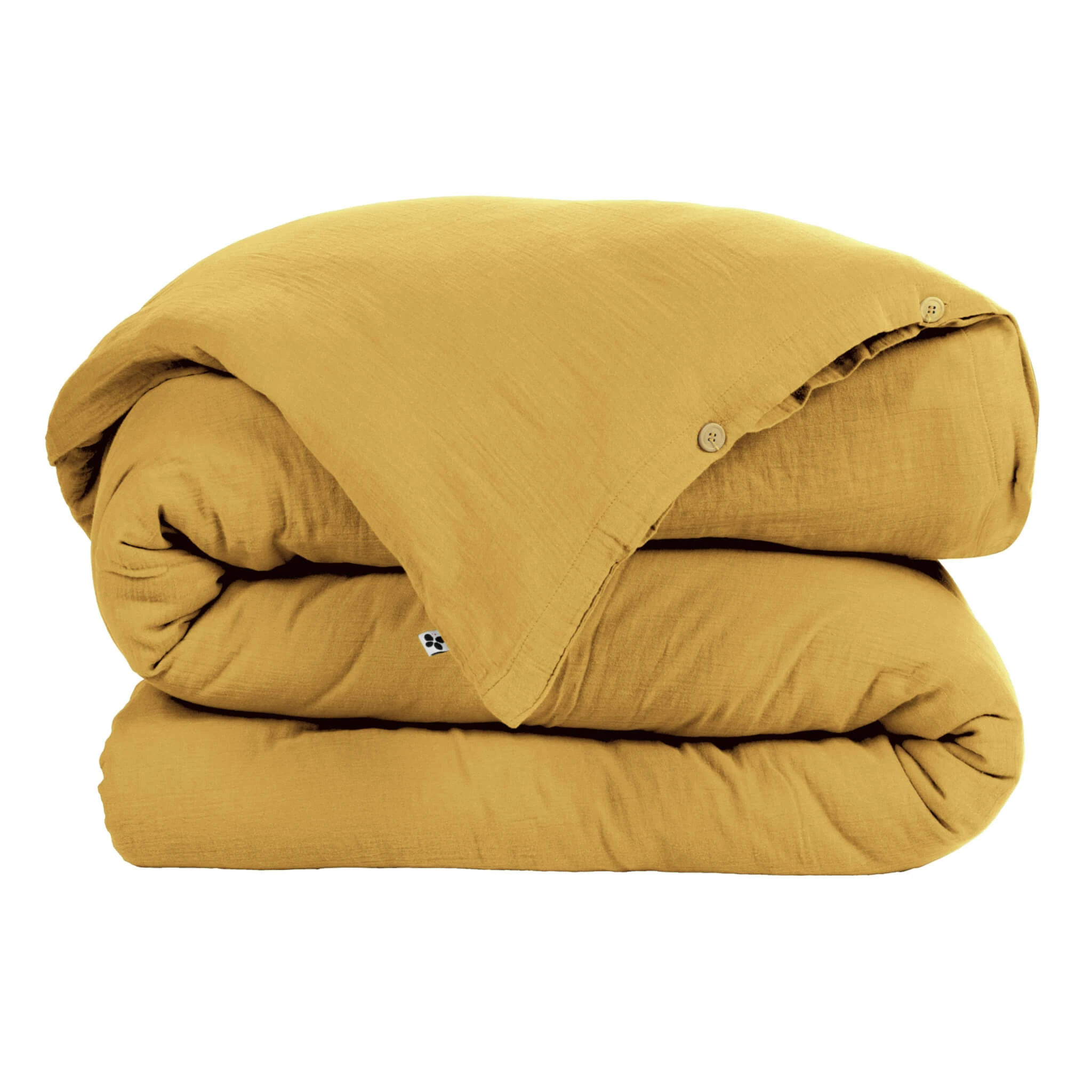 Housse de couette double gaze de coton jaune safran