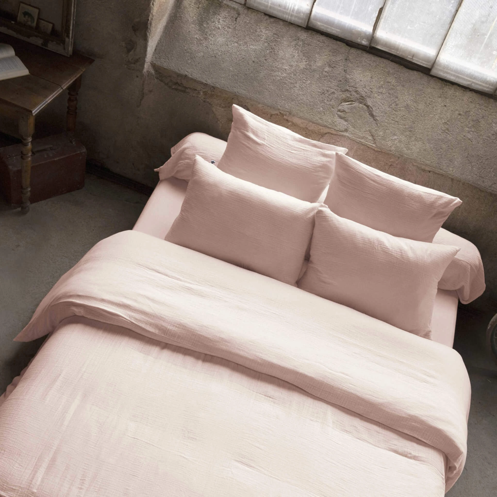 Housse de couette double gaze de coton rose