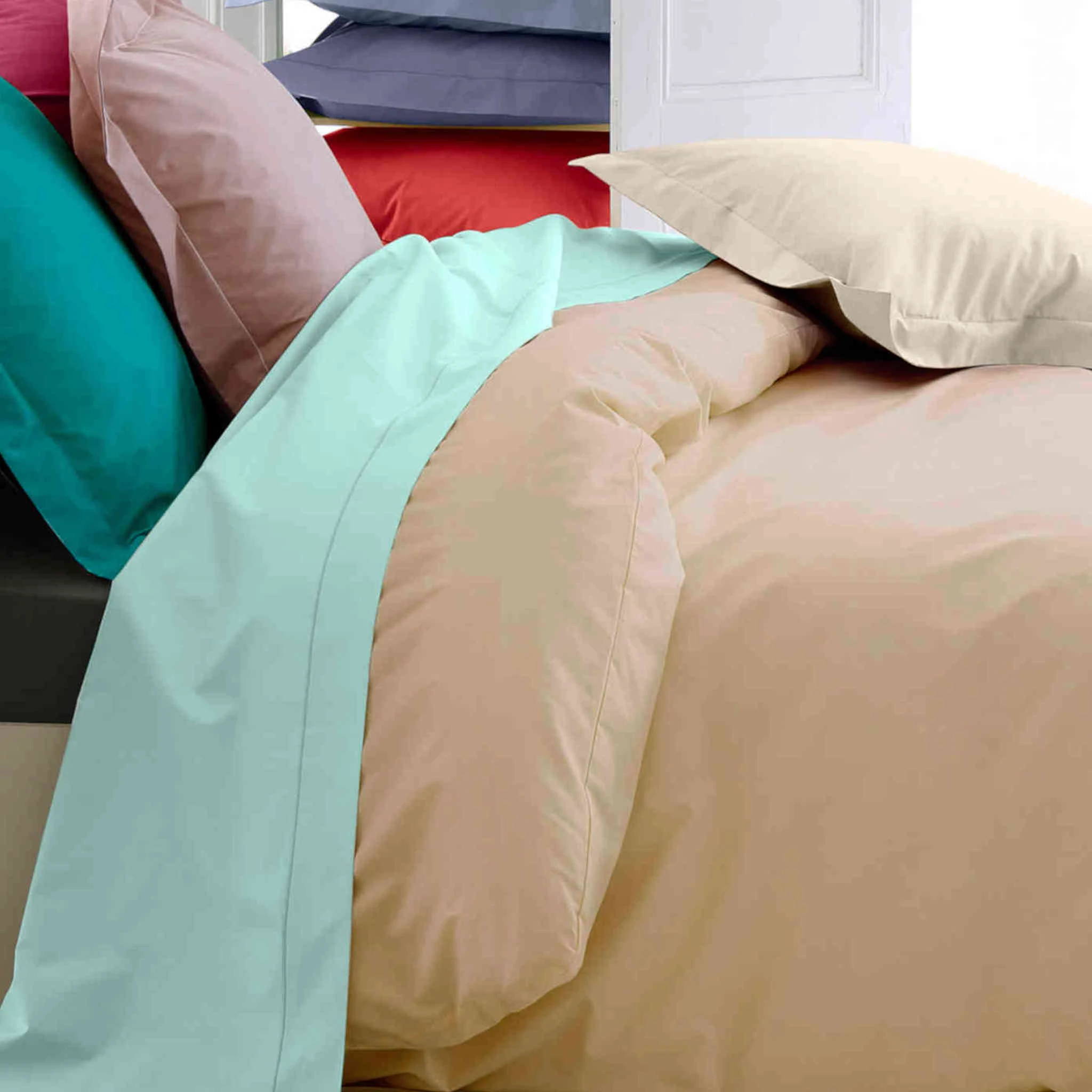 Housse de couette percale beige-