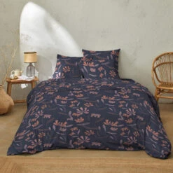 Découvrez la parure de lit Zaz terracotta, de la marque Terre de Nuit. Laissez vous tenter par l’originalité de cette merveilleuse parure de lit. La complémentarité des fleurs de couleur terracotta et du fond bleu marine assurera une chambre vivante et chaleureuse.
