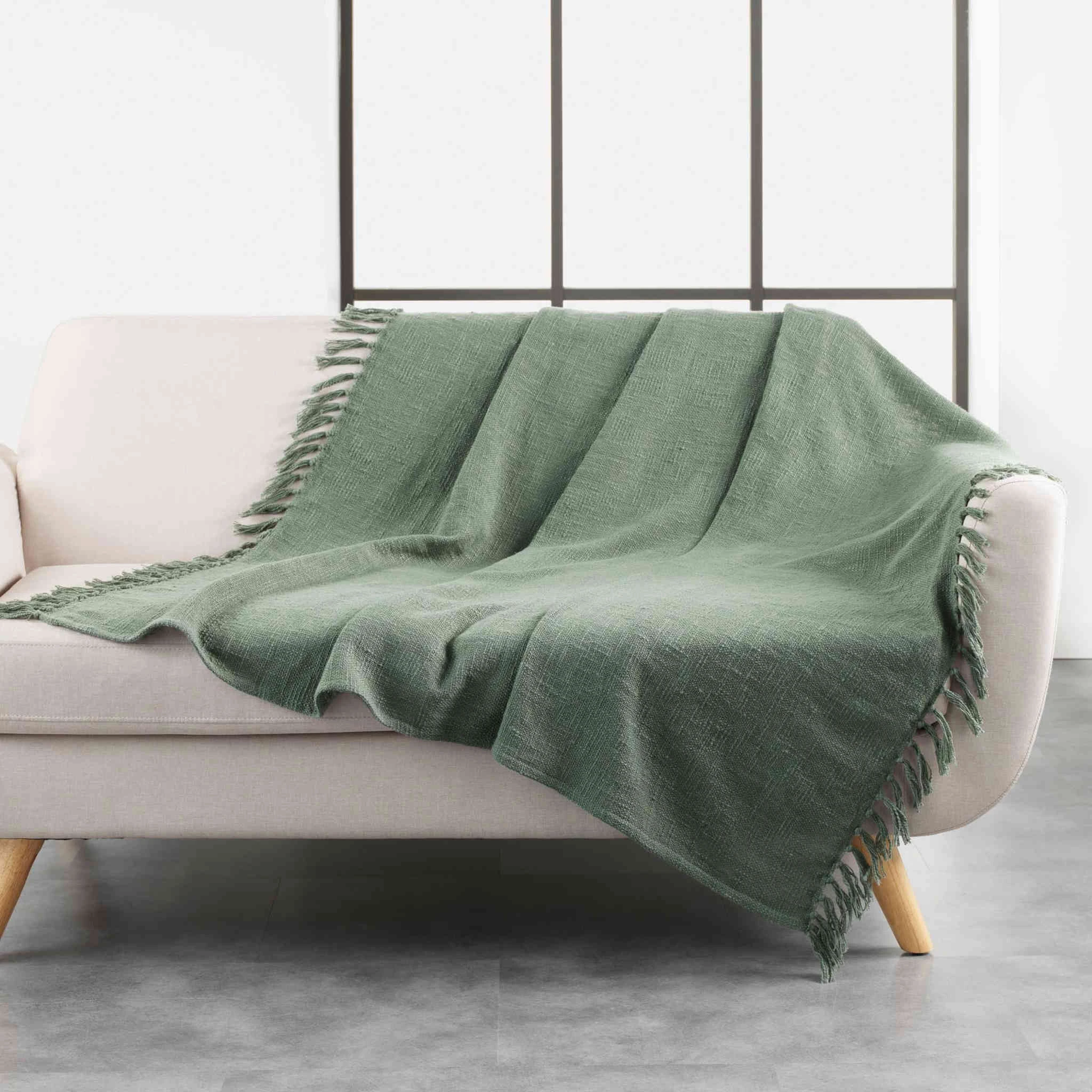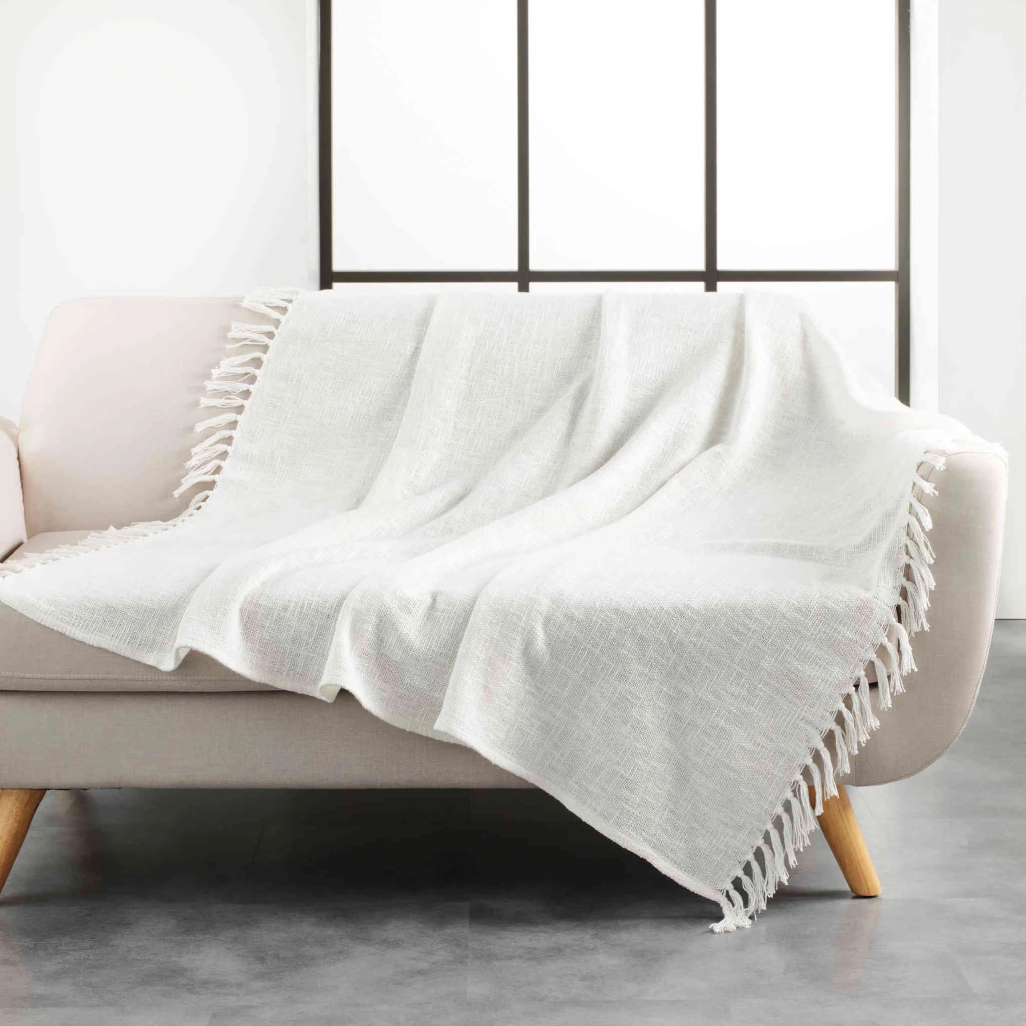 Plaid à franges en coton tissé Zamina 125×150 cm