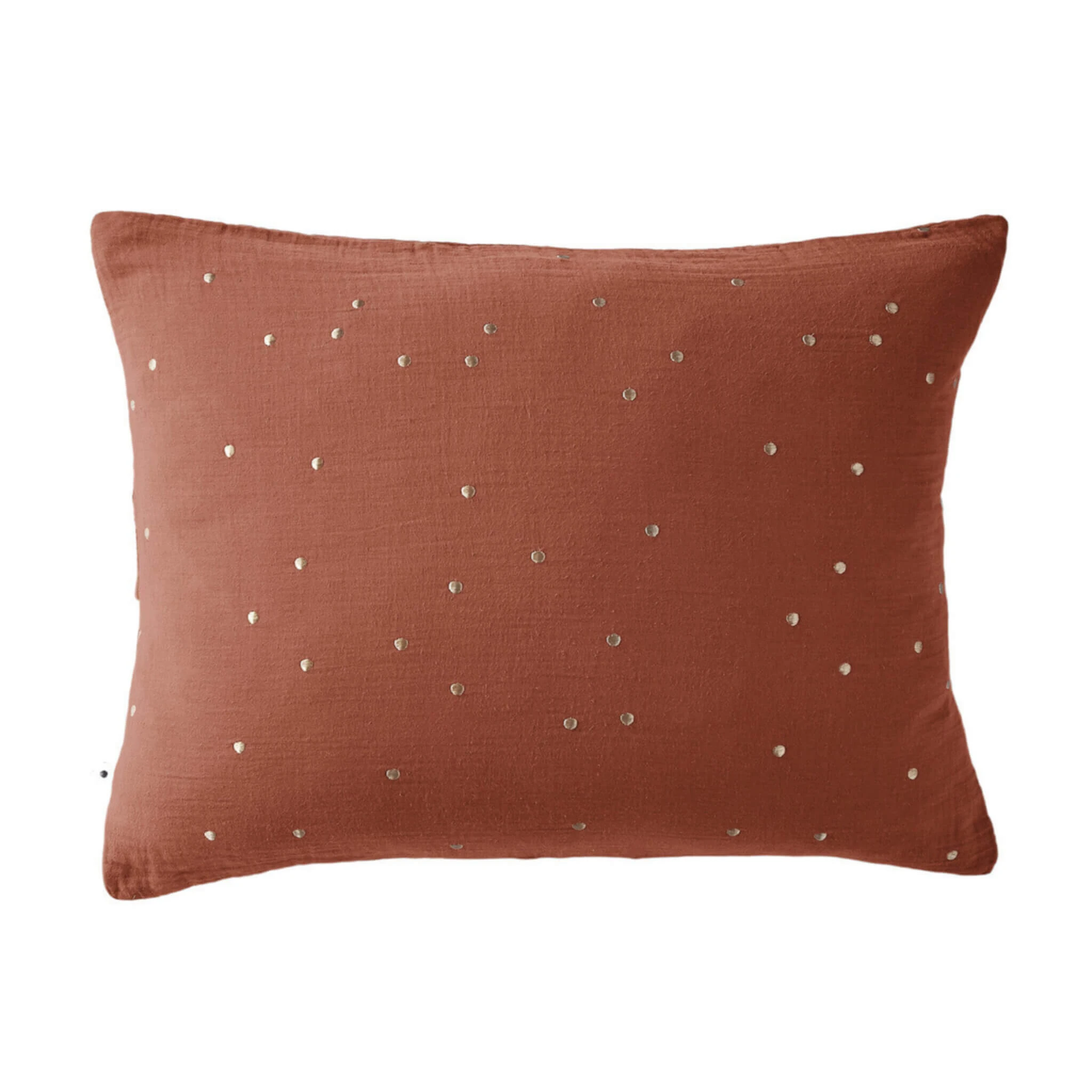 Taie d’oreiller à pois brodés double gaze de coton orange