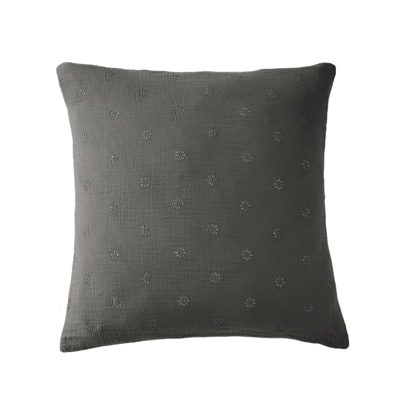 Taie d’oreiller brodée double gaze de coton gris anthracite